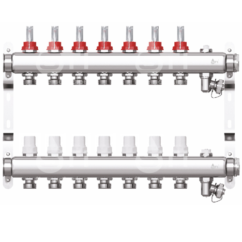 Группа коллекторная нержавеющая сталь 1" ВР/ВР 2 вых 3/4" НР под евроконус с расходомерами